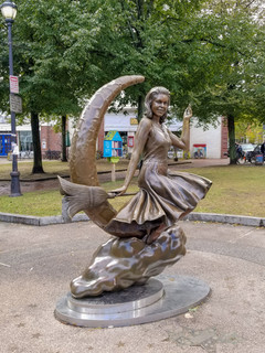 As you make your way down Essex St. back towards Salem Common you'll pass the Bewitched statue. Episodes of the show were filmed in Salem and the statue commemorates it. It's a cute (and crowded) photo op, but that's it.